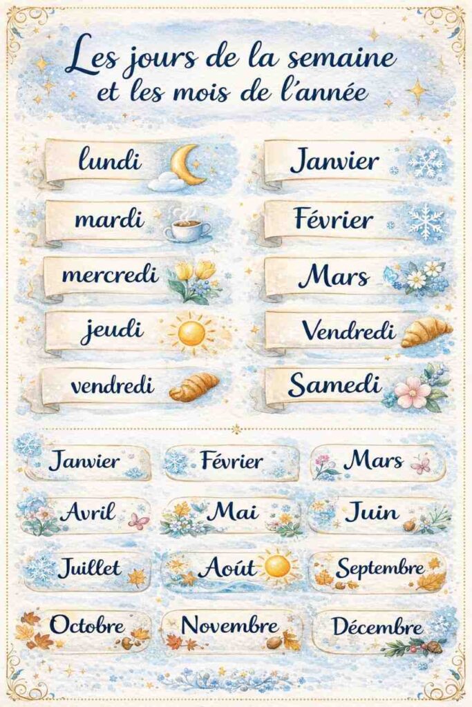 | Days | lundi, mardi, mercredi, jeudi, vendredi, samedi, dimanche |
